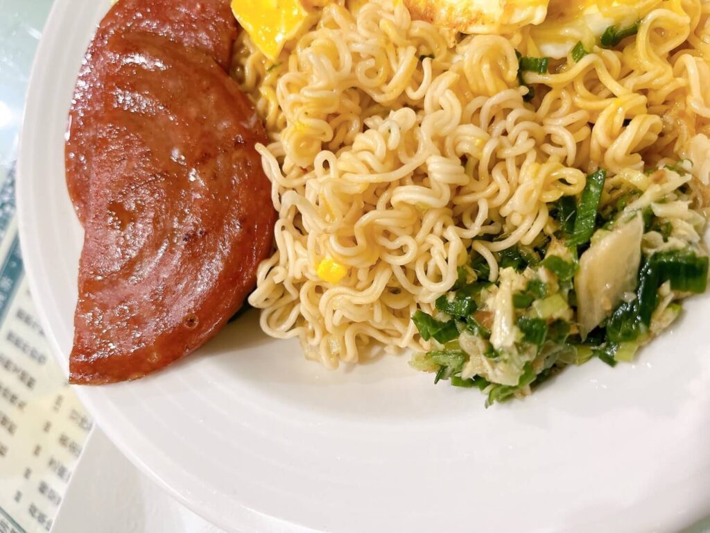 餐肉因為夠厚所以口感夠,豐富了撈丁軟爛的口感,然後蛋汁跟撈丁兩個近乎無味的食材又能中和餐肉的鹹味,蛋汁又能潤滑撈丁和餐肉這兩個偏乾的食材,三者搭配起來相互映襯,簡直天作之合,實在美味!