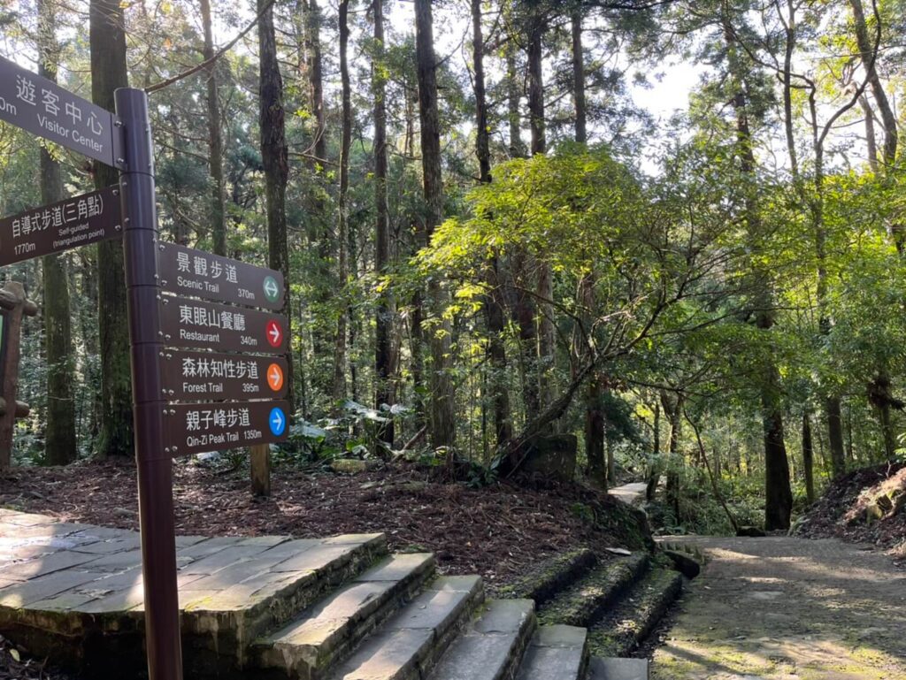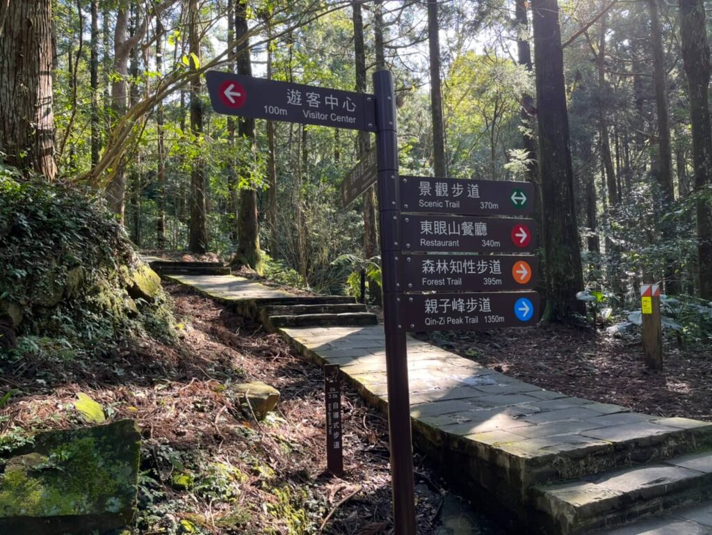 從遊客中心開始走景觀步道,路途中都會有標示,朝著"東眼山餐廳"那邊走就對了,完全不用怕走錯,大家不用太擔心