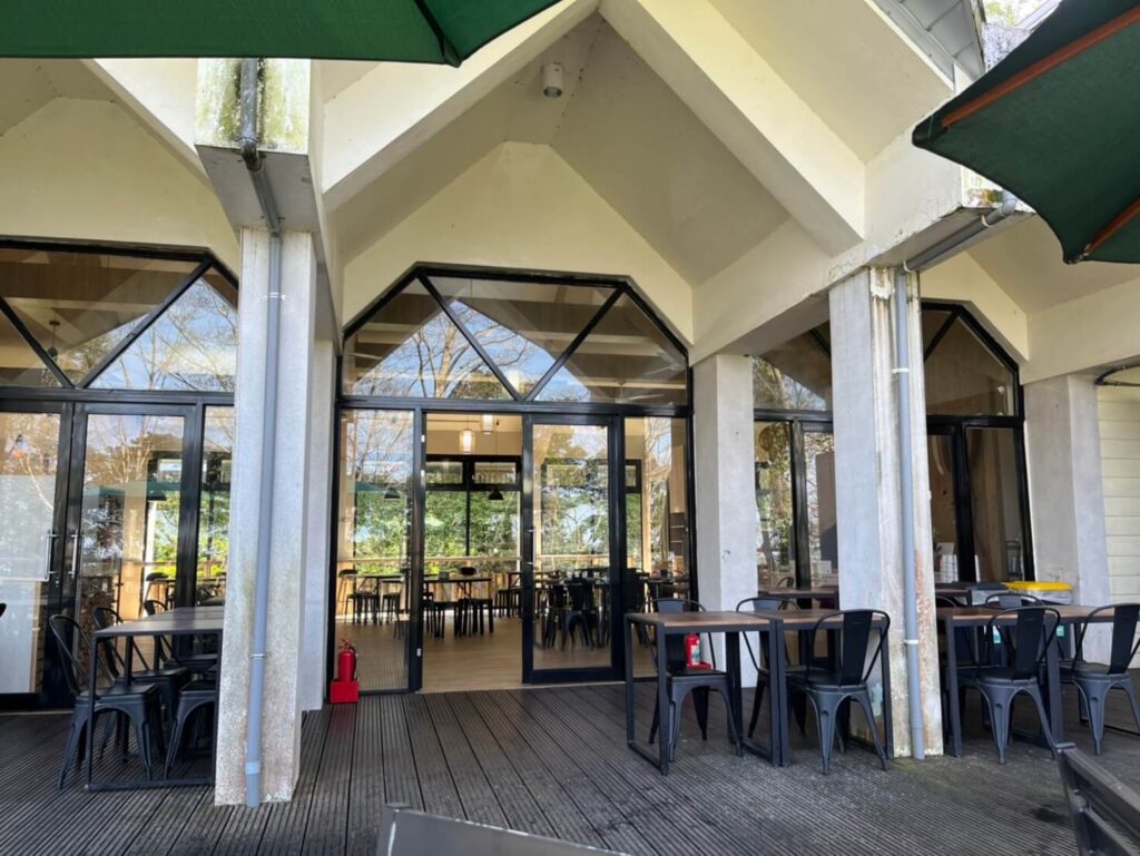 從室外用餐區回拍餐廳內部,可以看出東眼山森林食堂採光跟裝潢有多好